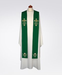Stuła kapłańska zdobiona wysokiej jakości haftem.